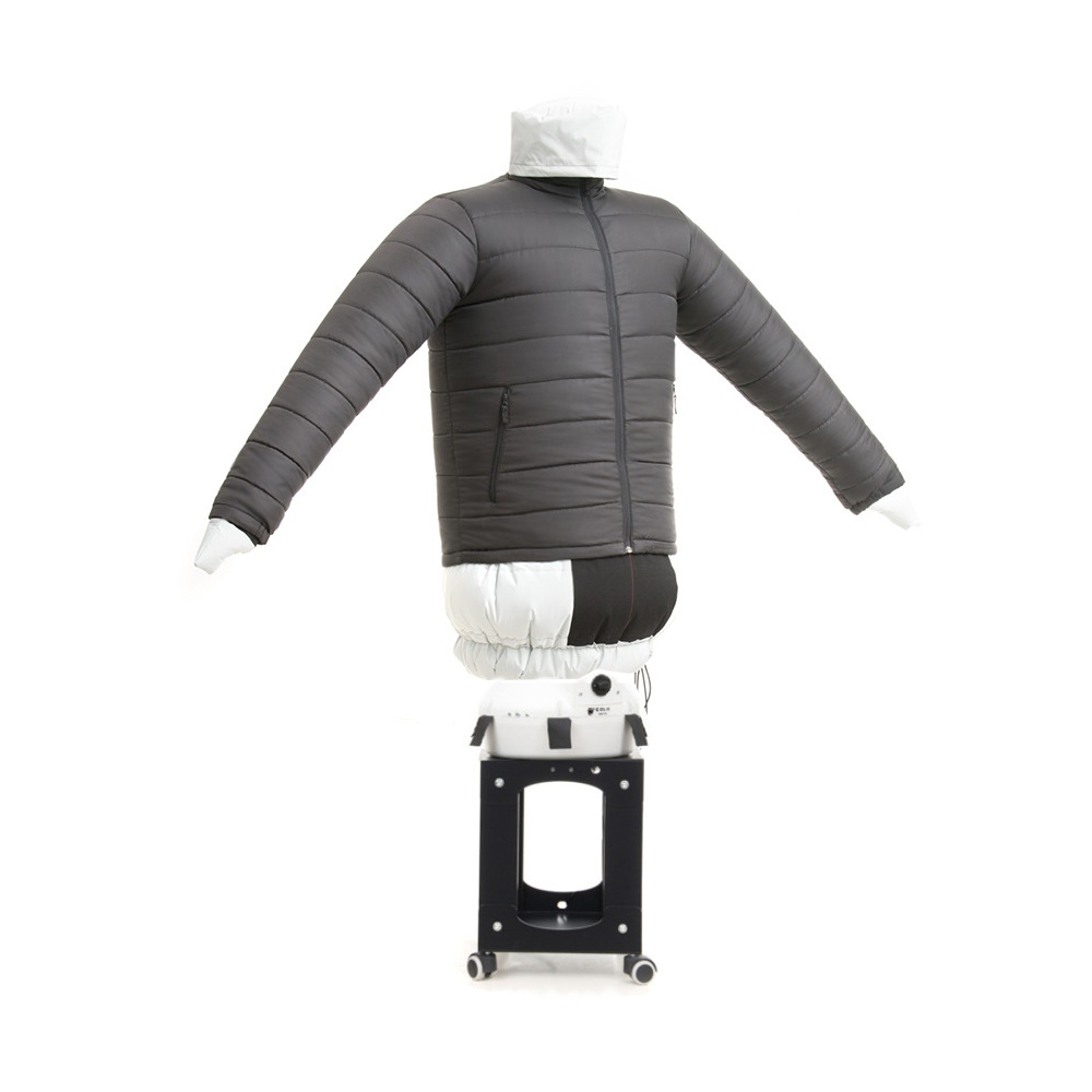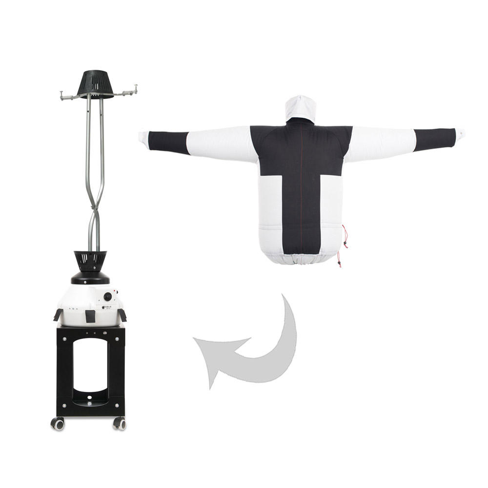 Способ применения: Одежда обязательно влажная (например, после отжима > 800 - 1400rpm в стиральной машине) встряхиваются и аккуратно размещаются на «Кукле-форме». Для рубашки: после расправления складок и надежной фиксации изделия на гладильном манекене и регулировки ширины плеч, необходимо включить манекен, чтобы наполнить куклу потоком холодного воздуха. Затем окончательно расправить гладимое изделие в натянутом виде, поправить, если требуется растяжки – убрать морщины на ткани. Затем включить нагрев. Теперь ваша одежда будет гладиться, и сушиться в автоматическом режиме. Мощный поток горячего воздуха позволяет высушить ткань, пока одежда наполнена воздухом и хорошо растянута, и одновременно отгладить ее без морщин и складок. Через некоторое время, 6-8 минут - одежду можно аккуратно снимать. После глажения одежды можно надеть ее или убрать на хранение в шкаф или выдать клиенту. Обращаем ваше внимание, что для идеального качества некоторых участков рубашки, например многослойная планка или манжет, возможно, потребуется применение отпаривателя или утюга.