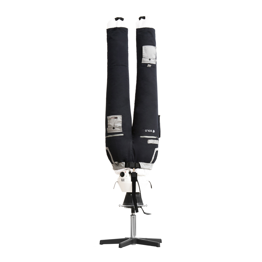 Просим не путать с пароманекенами. Манекены Eolo не имеет парогенератора и гладит потоком горячего воздуха, который наполняет изнутри куклу-форму. Время глаженья одного изделия составляет 7-11 минут, русскоязычная инструкция подробно расскажет о теории и практике глажения различных изделий. Возможно, потребуется дополнительно разгладить воротник, манжеты, зону пояса брюк, все остальное манекен Eolo отгладит идеально. Манекен Eolo SA-07 не требует трудоемкой установки или программирования, сборка осуществляется в течение нескольких минут. Низкое энергопотребление гладильного манекена не ударит по бюджету. Простая и безопасная конструкция не позволит пользователю пораниться или причинить себе иной вред. Гладильный манекен Eolo SA-07 имеет 2 «куклы-формы» - рубашка и брюки, возможна регулировка по высоте.
